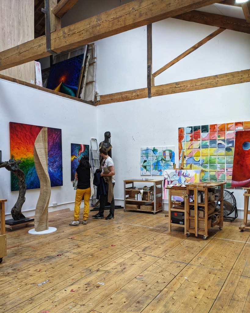 The studio is visited by interested people daily. I like keep the doors open, so curious visitors can sneak a peek and come in to be shown around.